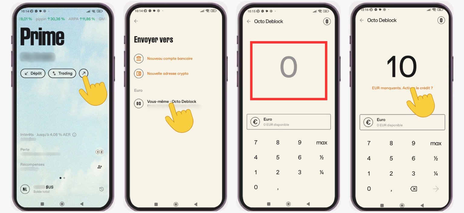 Indiquez le montant que vous voulez transférer, vérifiez les données d’envois, le montant emprunté sans oublier de prendre connaissance des intérêts d’emprunt.