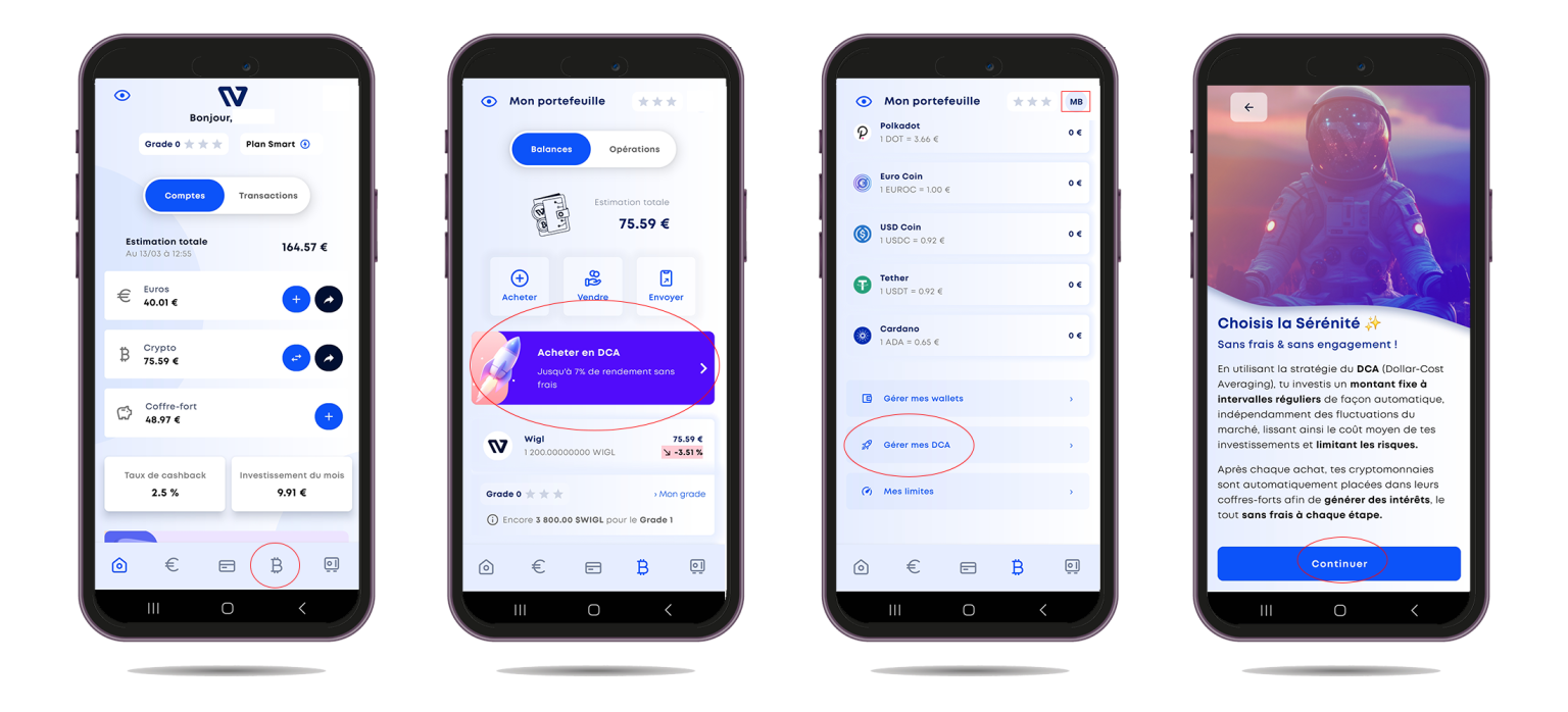 Pour mettre en place un DCA Bitcoin sur Wigl, c’est très simple.