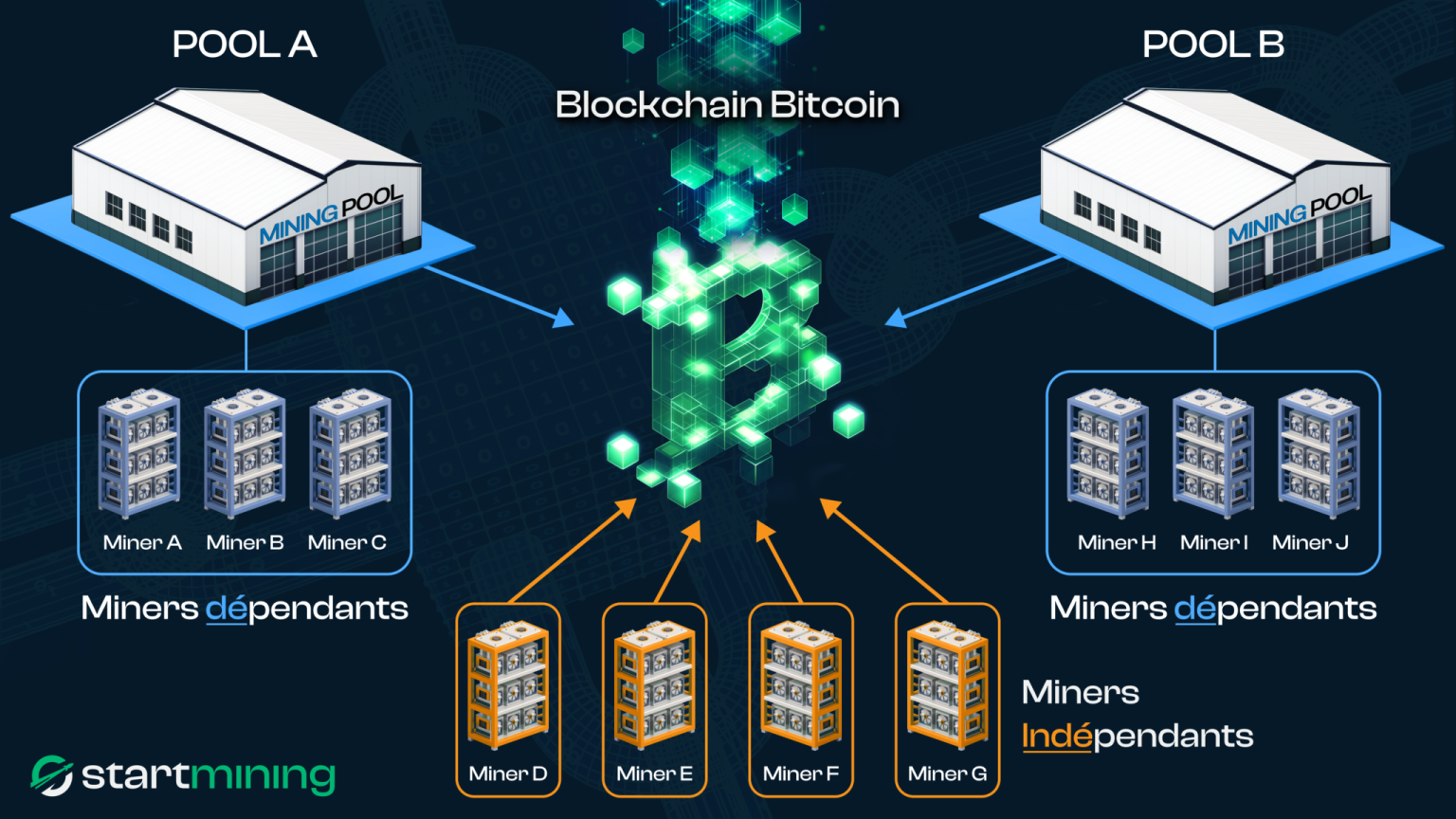 Si en 2010 il suffisait d’un ordinateur connecté à Internet pour pouvoir miner du Bitcoin, aujourd’hui l’histoire est différente. L’augmentation de la difficulté de minage sans cesse croissante au fil des halving a rendu cette activité très couteuse. En effet, si 50$ d’électricité par mois et un ordinateur de bureau suffisait pour espérer valider quelques blocs par an. Aujourd’hui, il faut des ASIC à 3 000$ qui consomment plus de 150 $ d’énergie par mois. Et même avec cette configuration (machine et prix du kw/h industriel), valider un bloc en solo demanderait des dizaines, voire des centaines d’années. L’organisation des mineurs au sein de pools de minage a mis en lumière tout le potentiel de la collaboration dans la sécurisation du réseau Bitcoin, une vision parfaitement alignée avec celle de Startmining.